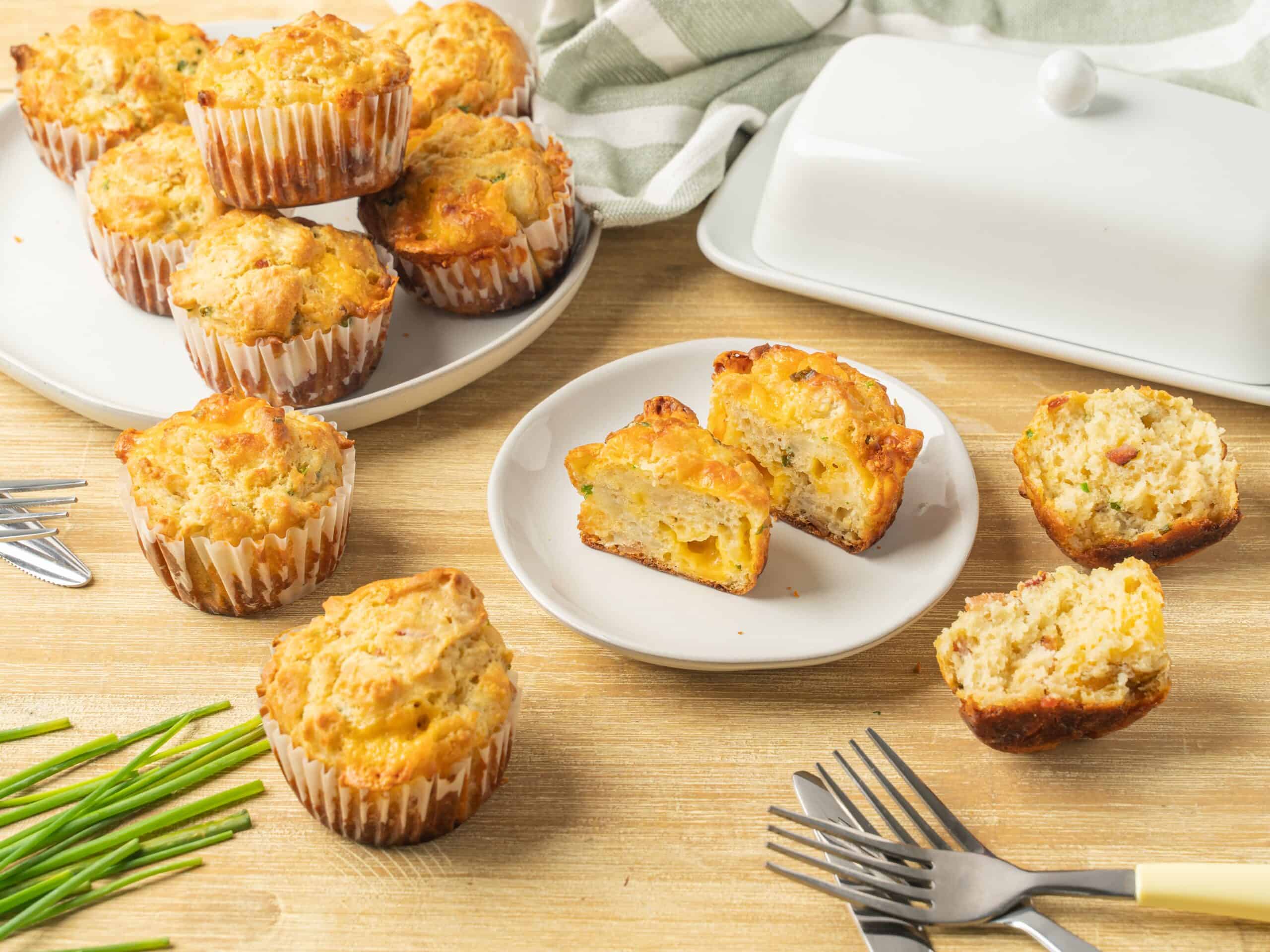 Irish Cheddar Muffins offer savory richness with bacon and cheddar bites.