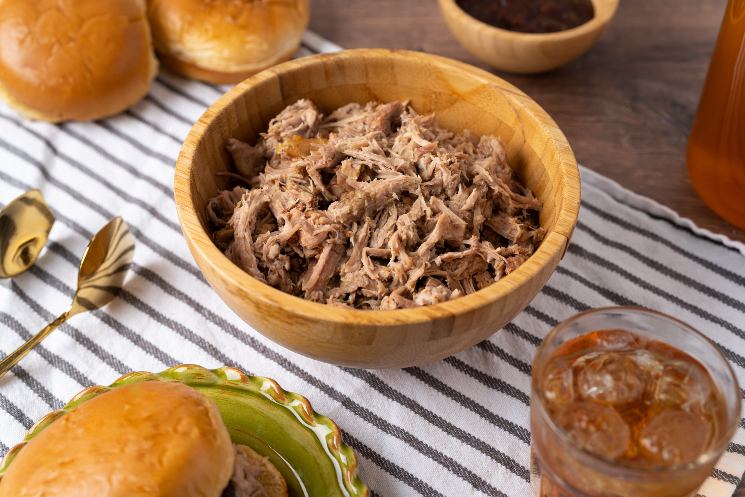 Slow cooker pulled pork offers smoky aromas and tender texture.